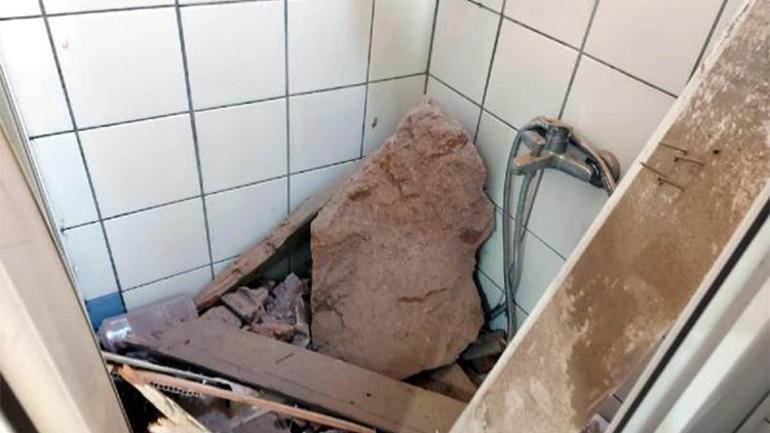 Yamaçtan kopan kaya parçaları çatıyı delip eve girdi